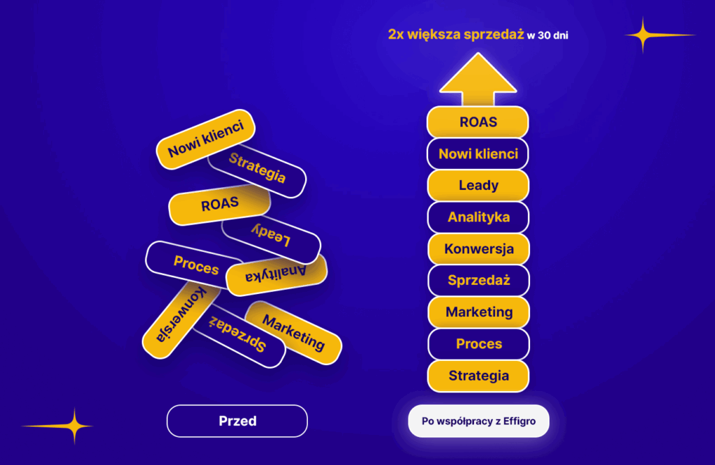 - Klient odzyskał pełną kontrolę nad marketingiem. Teraz decyzje o alokacji budżetu opierają się na twardych danych, a nie na intuicji, co daje poczucie bezpieczeństwa i przewidywalności.